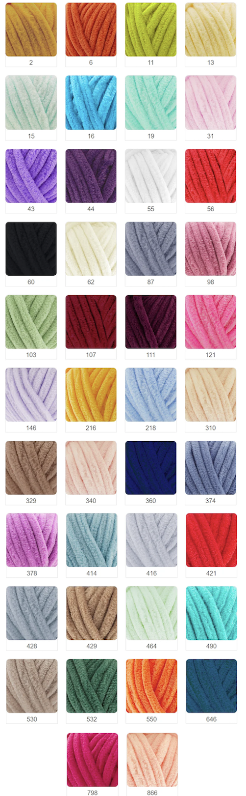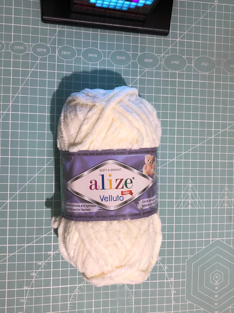 El estambre chenille Alize Velluto es un hilo de alta calidad con textura suave, aterciopelada y velluda, ideal para amigurumis, muñecos tejidos y peluches. Su hebra tipo chenille ofrece un tejido cómodo, volumen uniforme y un acabado delicado que realza cada proyecto.